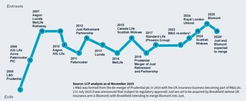 Mergers and acquisitions were a notable feature of the market in 2025. Three of the eleven insurers active in the UK bulk annuity market announced acquisitions by international investors: