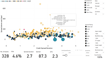 Whilst our client had a clear view on the bonds they wanted to hold immediately after the review, we know that market conditions will change in future. Some parts of the market will become more attractive over time, and the outlook for other assets will worsen.