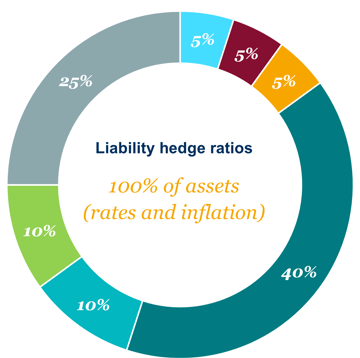 - Hedge interest rate and inflation risks since we don’t expect to be paid a significant or reliable premium for taking these risks. This means we will need to hold enough collateral (mostly gilts and cash) to support our hedge, and will need to generate enough return elsewhere in the portfolio to make sure we still expect to generate the returns needed with a high degree of likelihood.