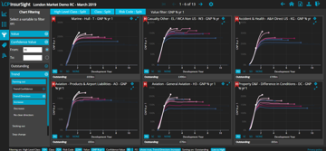 The screenshot below is an example of this approach using LCP InsurSight’s automated trend identification to identify which risk codes have significant slowing down in premium development. This is useful as an early warning sign of softening market conditions before this is apparent in the claims data.