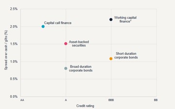 With spreads tighter, we recommend clients consider alternatives in the high grade credit space to corporate bonds that offer better risk adjusted returns. Many investors have already allocated money to asset-backed securities. For those that are willing to forgo daily liquidity, we also see attractive opportunities in working capital finance and capital call finance.