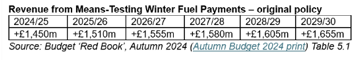 Looking at published data at the time of the last Budget (see below), the policy only got close to raising £1.7bn at the end of this decade, in 2029-30.