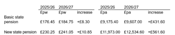 If pensions do end up rising by 4.7%, the new rates of the (old) basic state pension and the new state pension are shown in the table, both in pounds per week and pounds per year. Note the new state pension figure is assumed to be rounded down to nearest 5p, as this was the approach taken in April 2025.