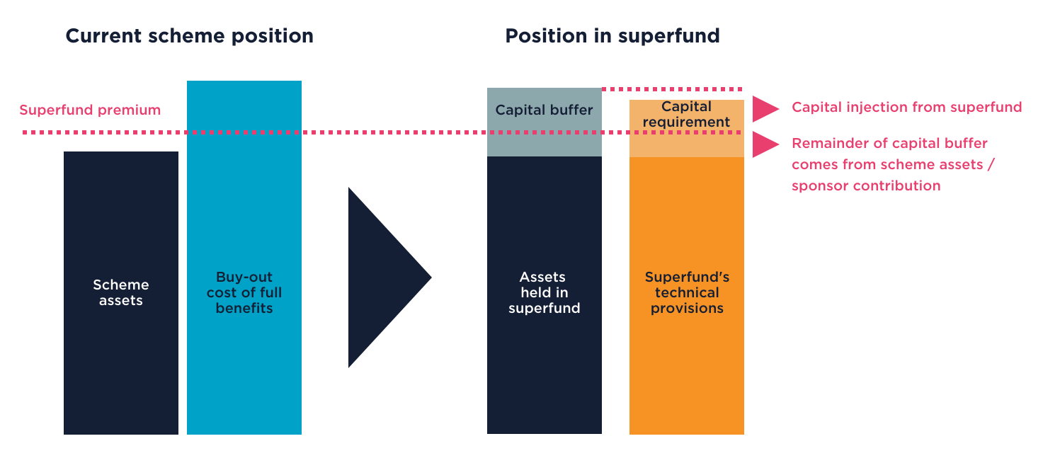 Schemes moving to a superfund are exchanging their sponsor covenant for the financial covenant offered by the Superfund (i.e. the capital / financial support provided by its investors) as well as (typically) an upfront cash injection from the sponsor.
