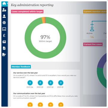 Get the information you want, whenever you want. Powered by our integrated systems, the Client dashboard offers comprehensive access to essential data including membership, casework activity, and financial reporting, as well as the latest pensions news and team information.